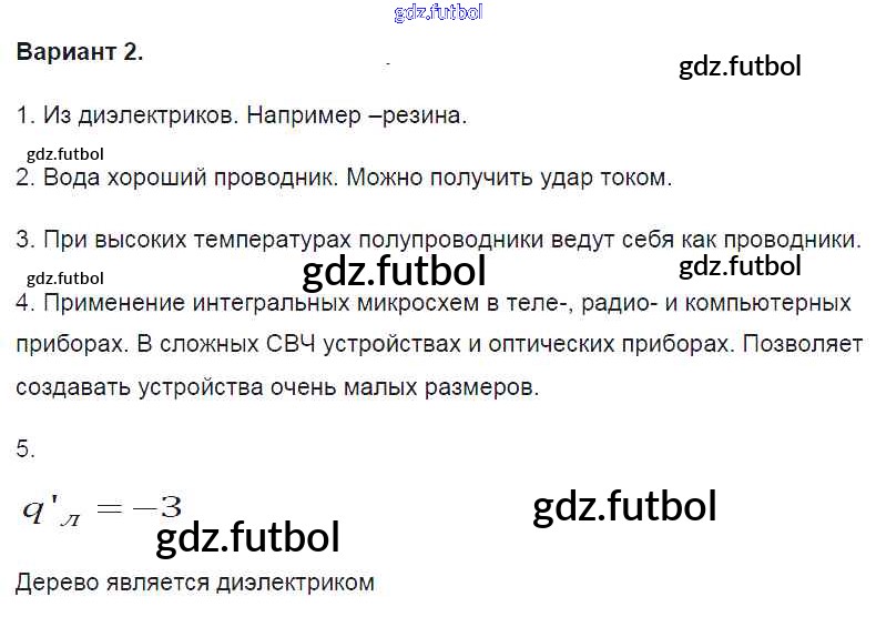 Готовые домашние задания по Физике за 8 класс Громцева Контрольные и самостоятельные работы УМК 2017 ФГОС - СР №27. Проводники, полупроводники и непроводники вариант-2