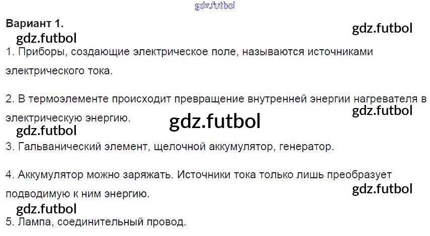 Готовые домашние задания по Физике за 8 класс Громцева Контрольные и самостоятельные работы УМК 2017 ФГОС - СР №28. Электрический ток вариант-1