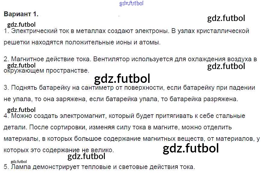 Готовые домашние задания по Физике за 8 класс Громцева Контрольные и самостоятельные работы УМК 2017 ФГОС - СР №29. Электрический ток в металлах вариант-1