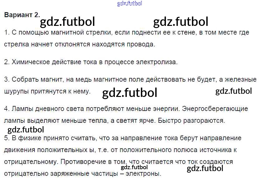 Готовые домашние задания по Физике за 8 класс Громцева Контрольные и самостоятельные работы УМК 2017 ФГОС - СР №29. Электрический ток в металлах вариант-2