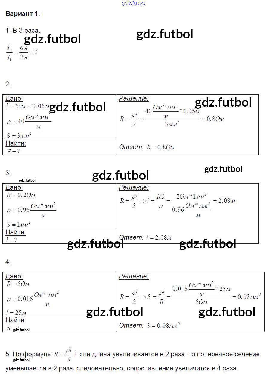 Готовые домашние задания по Физике за 8 класс Громцева Контрольные и самостоятельные работы УМК 2017 ФГОС - СР №32. Зависимость силы тока от напряжения. Электрическое сопротивление проводников вариант-1