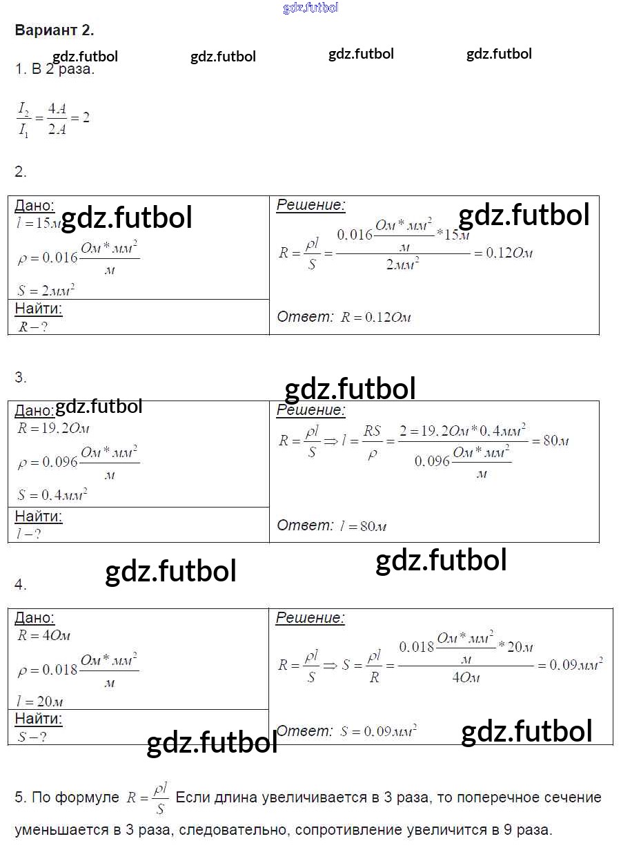 Готовые домашние задания по Физике за 8 класс Громцева Контрольные и самостоятельные работы УМК 2017 ФГОС - СР №32. Зависимость силы тока от напряжения. Электрическое сопротивление проводников вариант-2