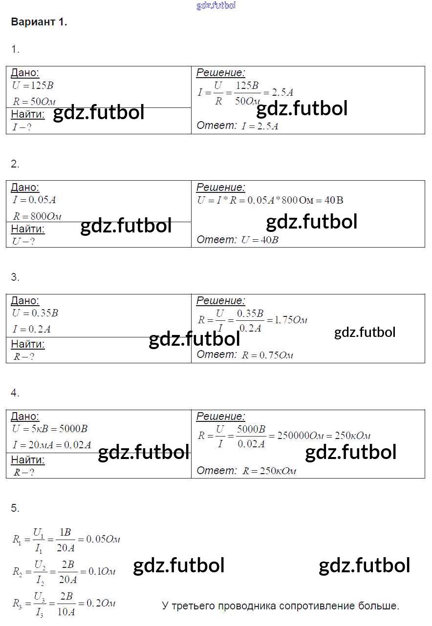 Готовые домашние задания по Физике за 8 класс Громцева Контрольные и самостоятельные работы УМК 2017 ФГОС - СР №33. Закон Ома для участка цепи вариант-1