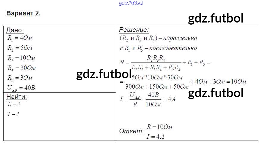 Готовые домашние задания по Физике за 8 класс Громцева Контрольные и самостоятельные работы УМК 2017 ФГОС - СР №35. Последовательное и параллельное соединение проводников. Расчет полного сопротивления и силы тока в цепи вариант-2