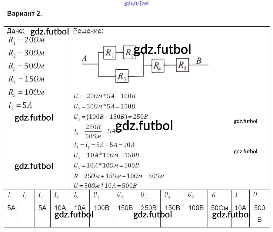 Готовые домашние задания по Физике за 8 класс Громцева Контрольные и самостоятельные работы УМК 2017 ФГОС - СР №36. Расчет электрических цепей вариант-2