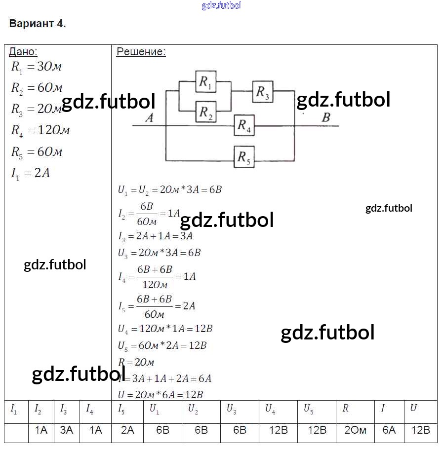 Готовые домашние задания по Физике за 8 класс Громцева Контрольные и самостоятельные работы УМК 2017 ФГОС - СР №36. Расчет электрических цепей вариант-4