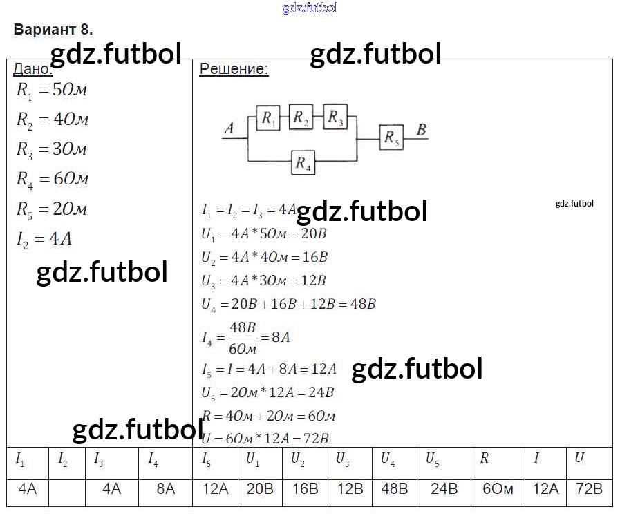 Готовые домашние задания по Физике за 8 класс Громцева Контрольные и самостоятельные работы УМК 2017 ФГОС - СР №36. Расчет электрических цепей вариант-8