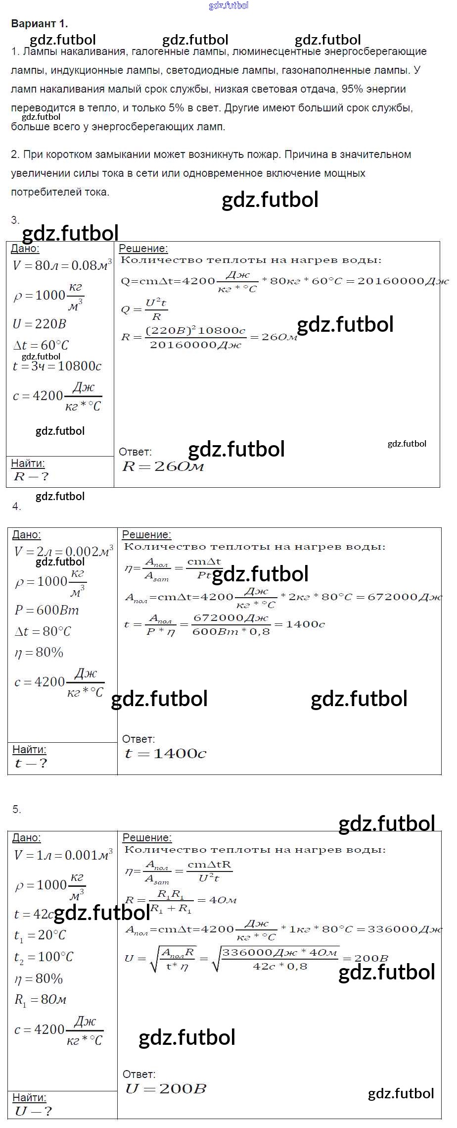 Готовые домашние задания по Физике за 8 класс Громцева Контрольные и самостоятельные работы УМК 2017 ФГОС - СР №40. Лампа накаливания. Электрические нагревательные приборы. Короткое замыкание. Предохранители вариант-1