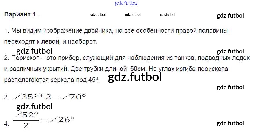 Готовые домашние задания по Физике за 8 класс Громцева Контрольные и самостоятельные работы УМК 2017 ФГОС - СР №46. Отражение света. Законы отражения. Плоское зеркало вариант-1