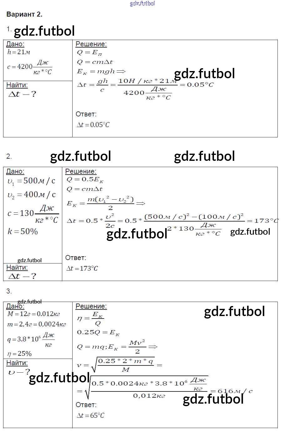 Готовые домашние задания по Физике за 8 класс Громцева Контрольные и самостоятельные работы УМК 2017 ФГОС - СР №9. Закон сохранения и превращения энергии в механических и тепловых процессах вариант-2