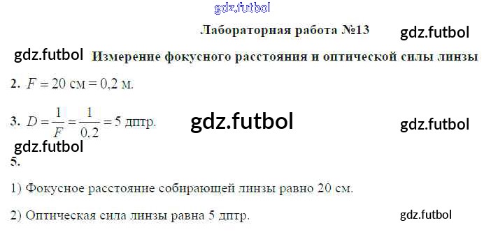 Готовые домашние задания по Физике за 8 класс Громов Учебник 2018 ФГОС - Лабораторные работы ЛР №13. Измерение фокусного расстояния и оптической силы линзы
