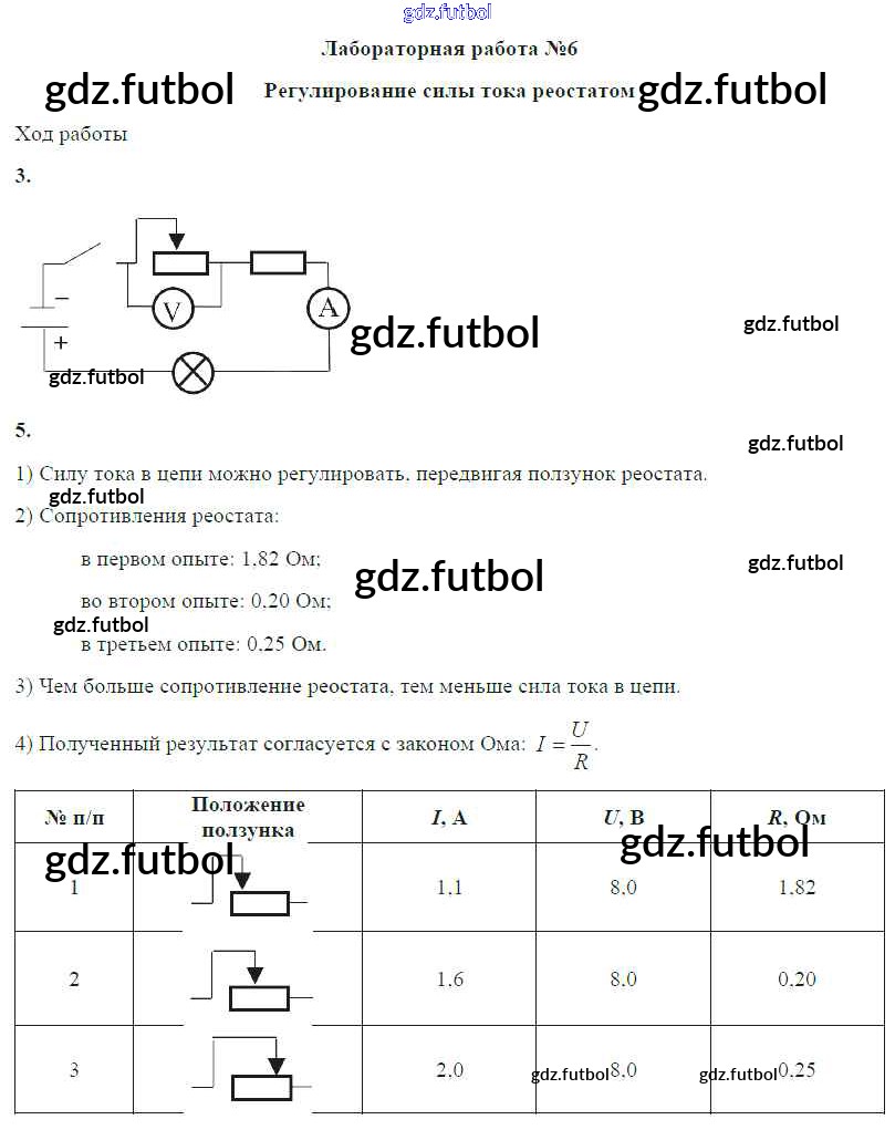 Готовые домашние задания по Физике за 8 класс Громов Учебник 2018 ФГОС - Лабораторные работы ЛР №6. Регулирование силы тока реостатом