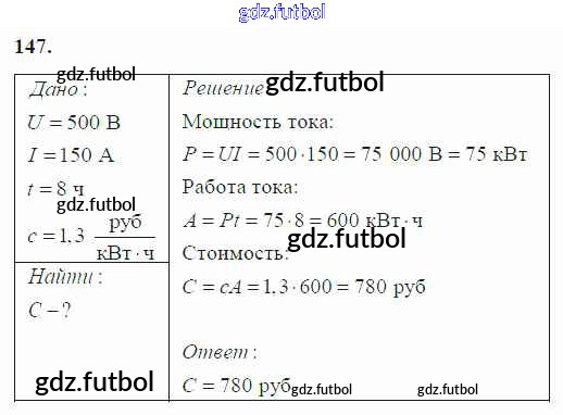 Готовые домашние задания по Физике за 8 класс Громов Учебник 2018 ФГОС - Задача 147