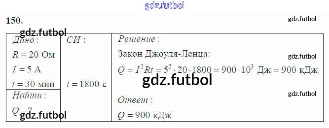 Готовые домашние задания по Физике за 8 класс Громов Учебник 2018 ФГОС - Задача 150