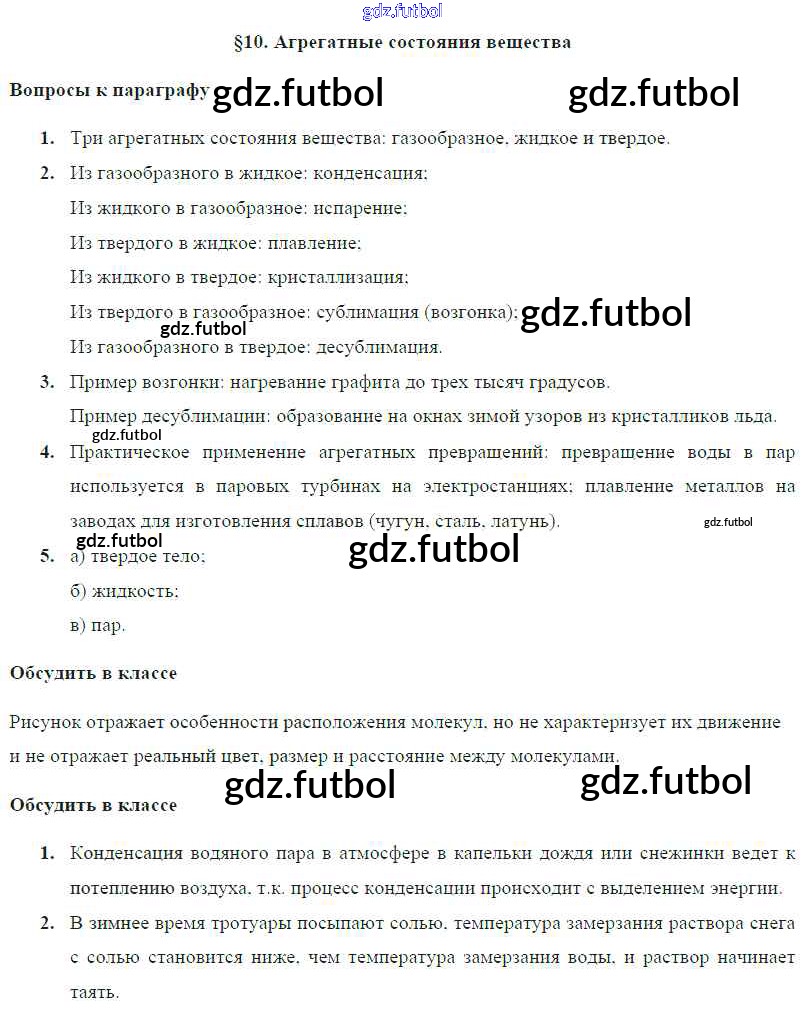 Готовые домашние задания по Физике за 8 класс Громов Учебник 2018 ФГОС - Параграфы § 10. Агрегатные состояния вещества