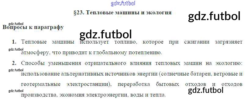 Готовые домашние задания по Физике за 8 класс Громов Учебник 2018 ФГОС - Параграфы § 23. Тепловые машины и экология