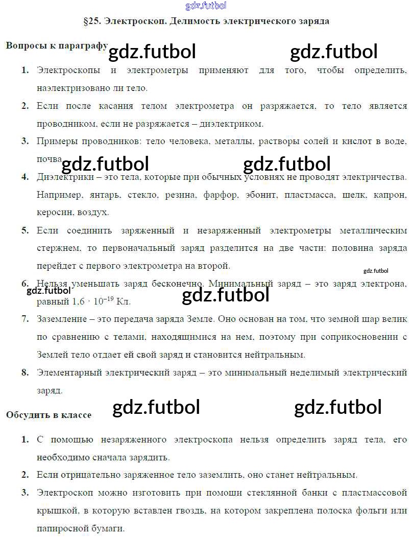 Готовые домашние задания по Физике за 8 класс Громов Учебник 2018 ФГОС - Параграфы § 25. Электроскоп. Делимость электрического заряда