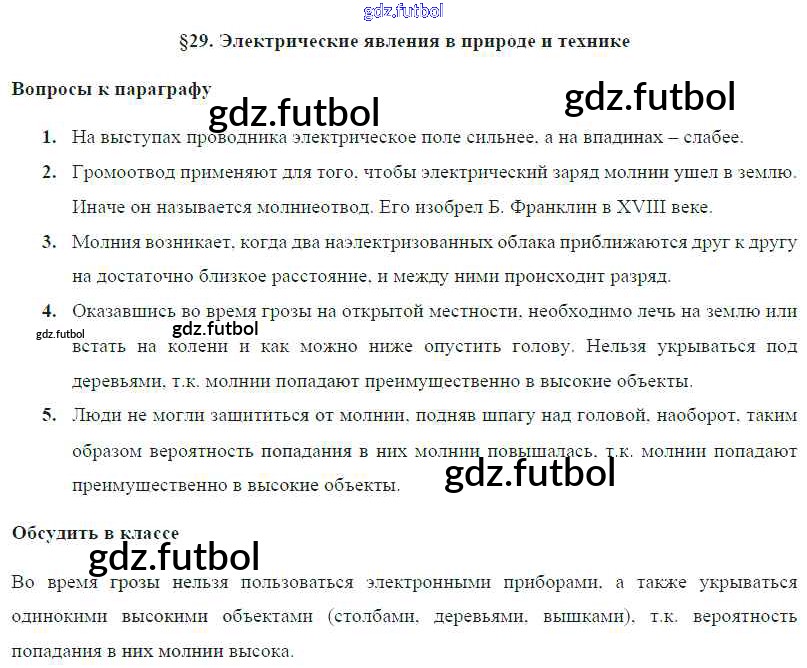 Готовые домашние задания по Физике за 8 класс Громов Учебник 2018 ФГОС - Параграфы § 29. Электрические явления в природе и технике
