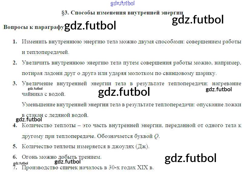 Готовые домашние задания по Физике за 8 класс Громов Учебник 2018 ФГОС - Параграфы § 3. Способы изменения внутренней энергии