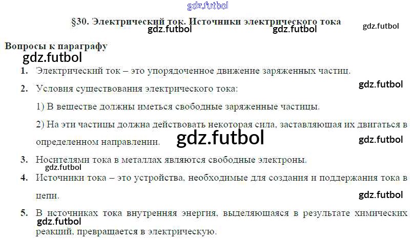 Готовые домашние задания по Физике за 8 класс Громов Учебник 2018 ФГОС - Параграфы § 30. Электрический ток. Источники электрического тока