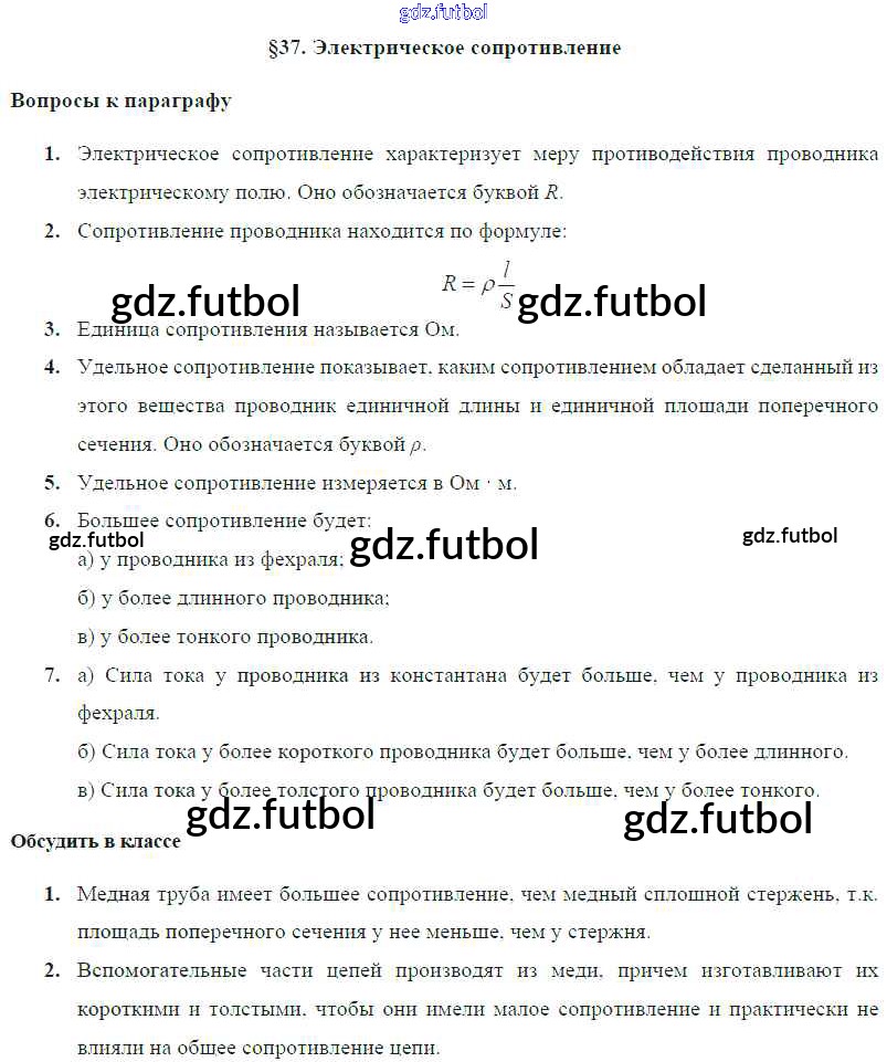 Готовые домашние задания по Физике за 8 класс Громов Учебник 2018 ФГОС - Параграфы § 37. Электрическое сопротивление