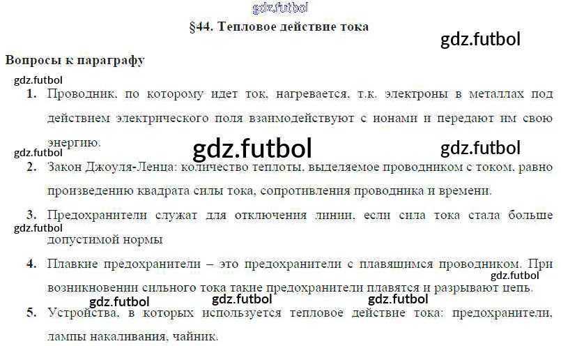 Готовые домашние задания по Физике за 8 класс Громов Учебник 2018 ФГОС - Параграфы § 44. Тепловое действие тока