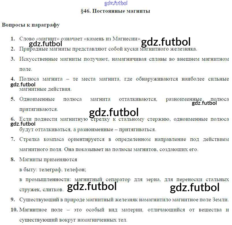 Готовые домашние задания по Физике за 8 класс Громов Учебник 2018 ФГОС - Параграфы § 46. Постоянные магниты