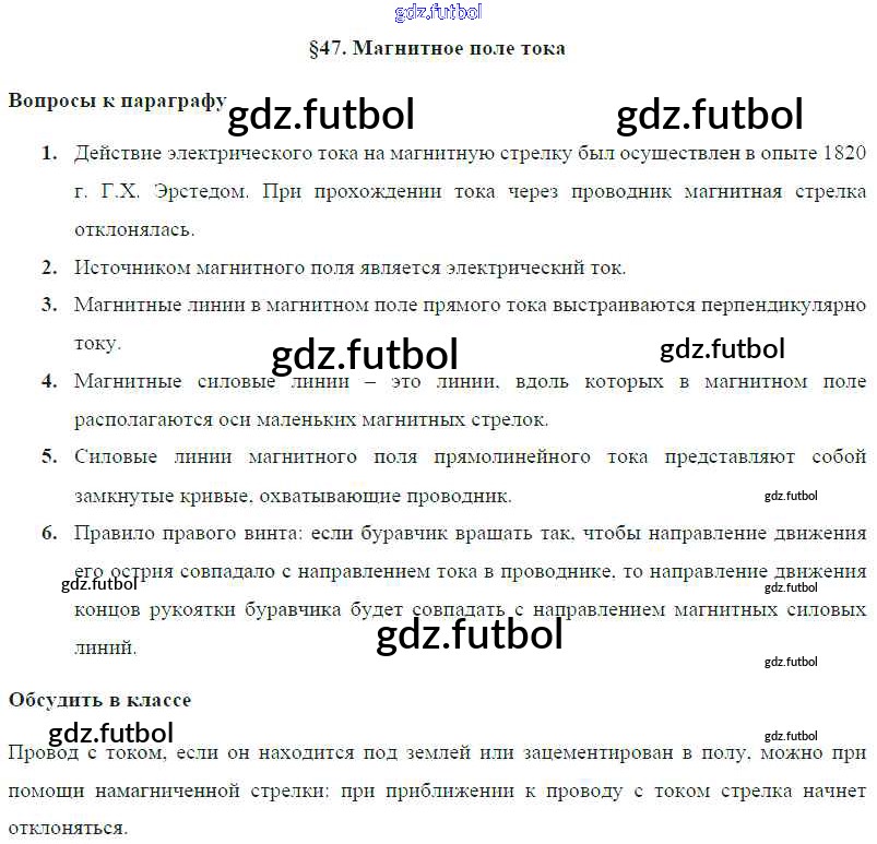 Готовые домашние задания по Физике за 8 класс Громов Учебник 2018 ФГОС - Параграфы § 47. Магнитное поле тока