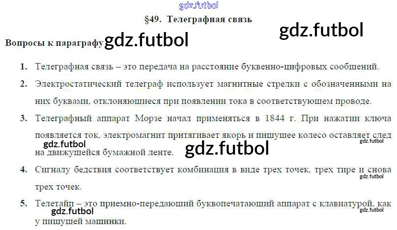 Готовые домашние задания по Физике за 8 класс Громов Учебник 2018 ФГОС - Параграфы § 49. Телеграфная связь