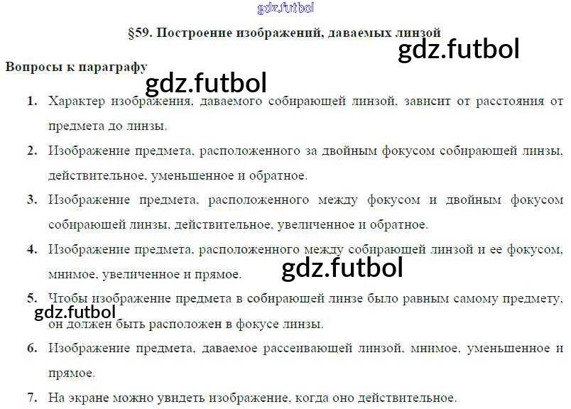 Готовые домашние задания по Физике за 8 класс Громов Учебник 2018 ФГОС - Параграфы § 59. Построение изображений, даваемых линзой