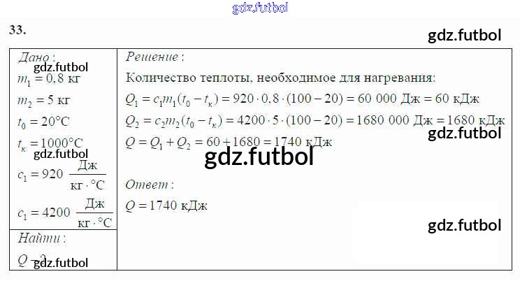 Готовые домашние задания по Физике за 8 класс Громов Учебник 2018 ФГОС - Задача 33