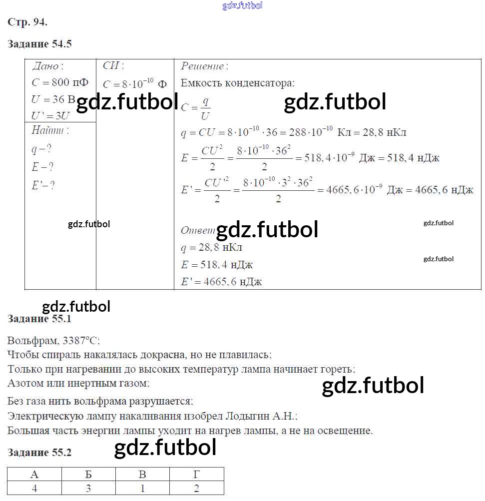 Готовые домашние задания по Физике за 8 класс Ханнанова Рабочая тетрадь Вертикаль 2017 ФГОС - Страницы 94