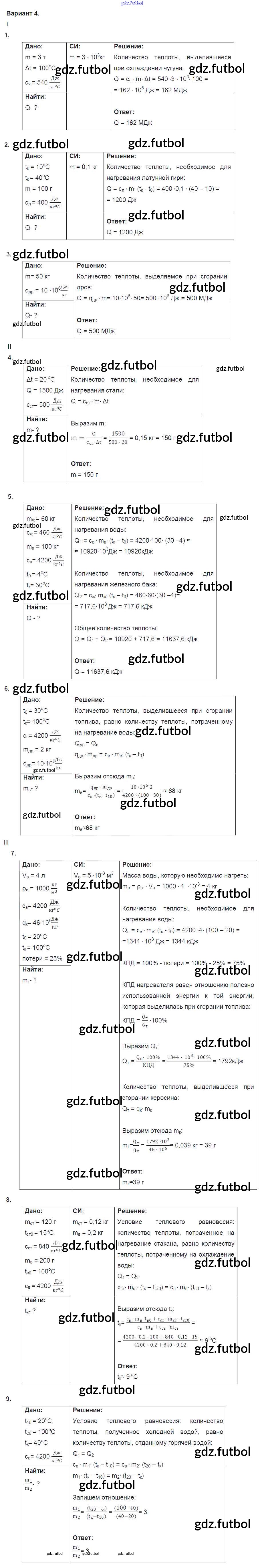 Готовые домашние задания по Физике за 8 класс Марон Дидактические материалы Вертикаль 2016 ФГОС - КР №1. Расчет количества теплоты. Варианты 4