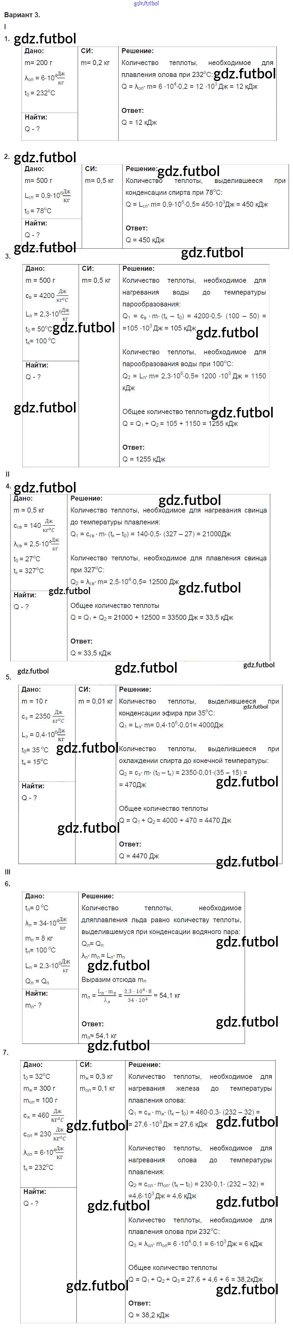 Готовые домашние задания по Физике за 8 класс Марон Дидактические материалы Вертикаль 2016 ФГОС - КР №2. Изменение агрегатных состояний вещества. Варианты 3