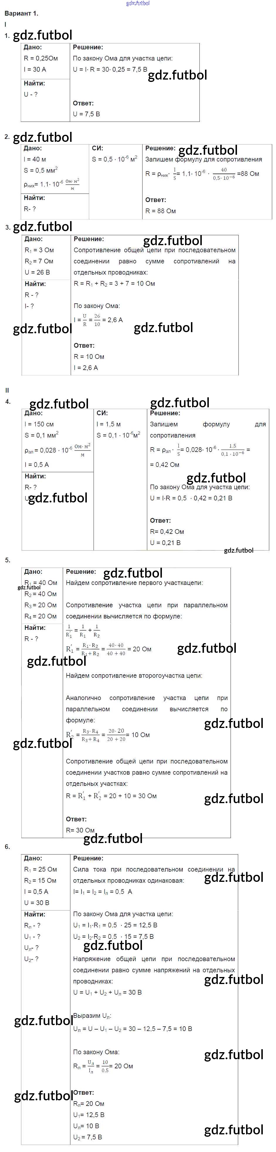 Готовые домашние задания по Физике за 8 класс Марон Дидактические материалы Вертикаль 2016 ФГОС - КР №3. Электрический ток. Варианты 1