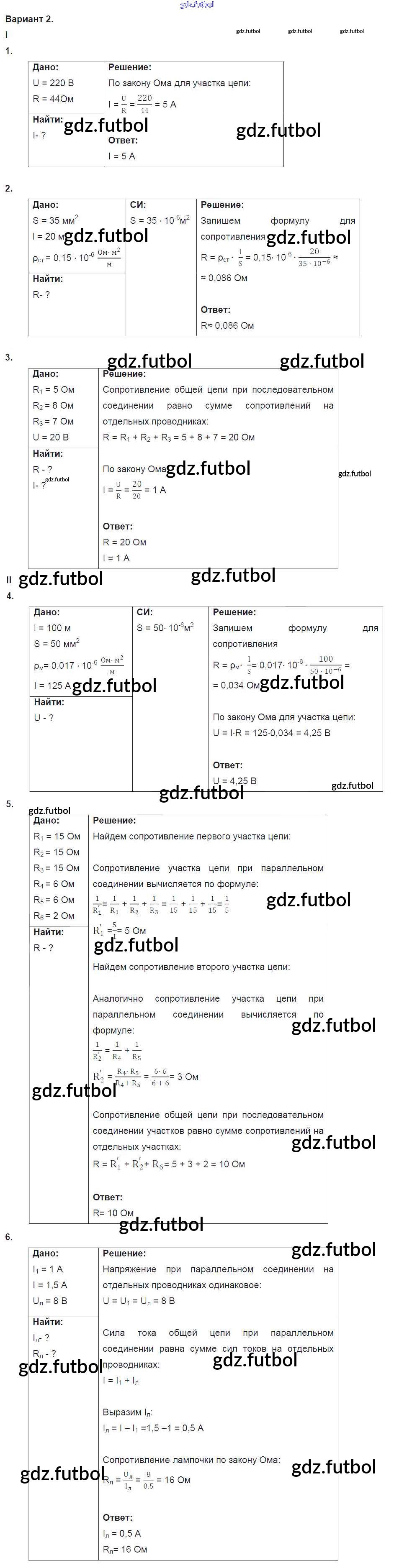 Готовые домашние задания по Физике за 8 класс Марон Дидактические материалы Вертикаль 2016 ФГОС - КР №3. Электрический ток. Варианты 2