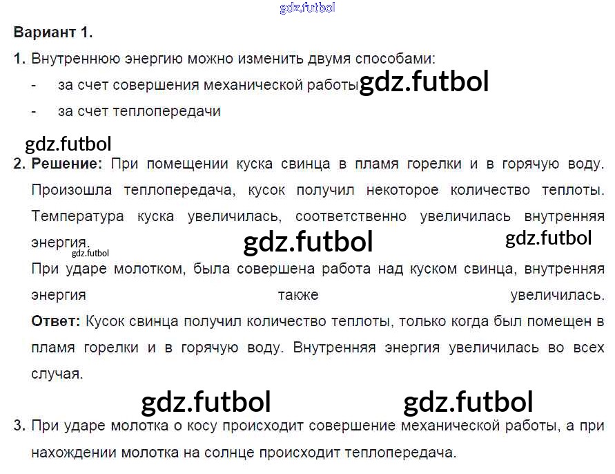 Готовые домашние задания по Физике за 8 класс Марон Дидактические материалы Вертикаль 2016 ФГОС - СР №1. Внутренняя энергия. Варианты 1