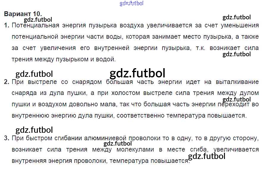 Готовые домашние задания по Физике за 8 класс Марон Дидактические материалы Вертикаль 2016 ФГОС - СР №1. Внутренняя энергия. Варианты 10