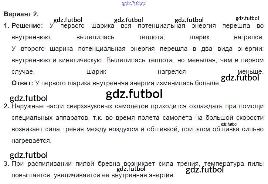 Готовые домашние задания по Физике за 8 класс Марон Дидактические материалы Вертикаль 2016 ФГОС - СР №1. Внутренняя энергия. Варианты 2