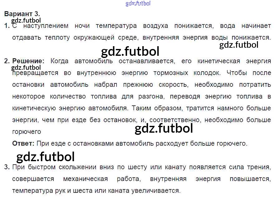 Готовые домашние задания по Физике за 8 класс Марон Дидактические материалы Вертикаль 2016 ФГОС - СР №1. Внутренняя энергия. Варианты 3