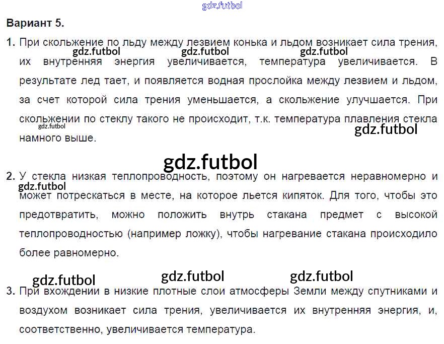 Готовые домашние задания по Физике за 8 класс Марон Дидактические материалы Вертикаль 2016 ФГОС - СР №1. Внутренняя энергия. Варианты 5