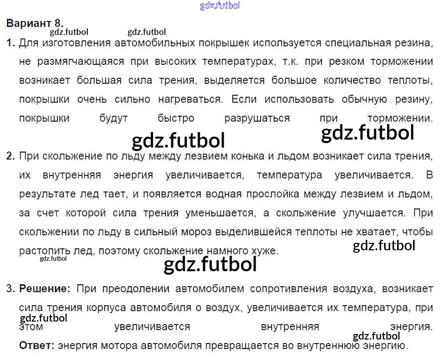 Готовые домашние задания по Физике за 8 класс Марон Дидактические материалы Вертикаль 2016 ФГОС - СР №1. Внутренняя энергия. Варианты 8
