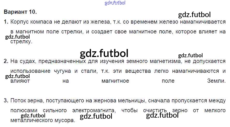Готовые домашние задания по Физике за 8 класс Марон Дидактические материалы Вертикаль 2016 ФГОС - СР №11. Электромагнитные явления. Варианты 10