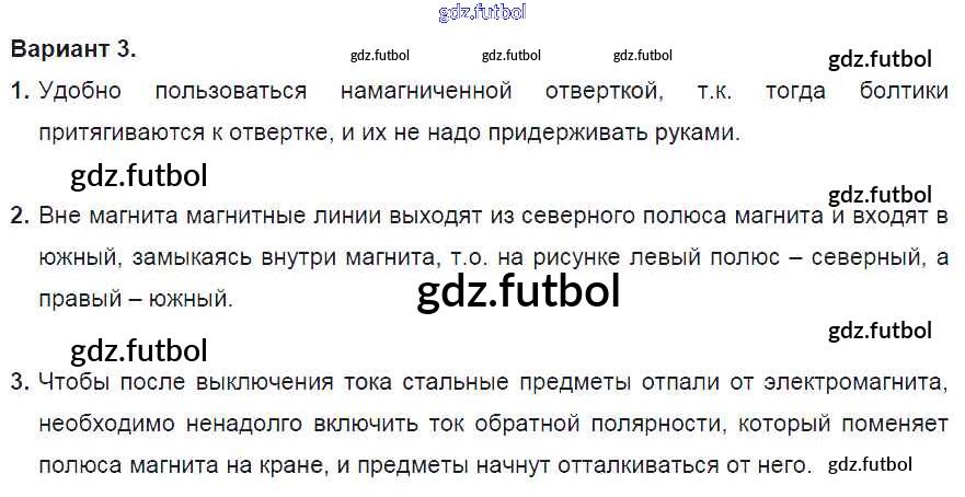 Готовые домашние задания по Физике за 8 класс Марон Дидактические материалы Вертикаль 2016 ФГОС - СР №11. Электромагнитные явления. Варианты 3