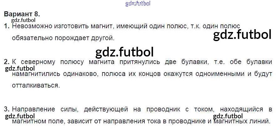 Готовые домашние задания по Физике за 8 класс Марон Дидактические материалы Вертикаль 2016 ФГОС - СР №11. Электромагнитные явления. Варианты 8