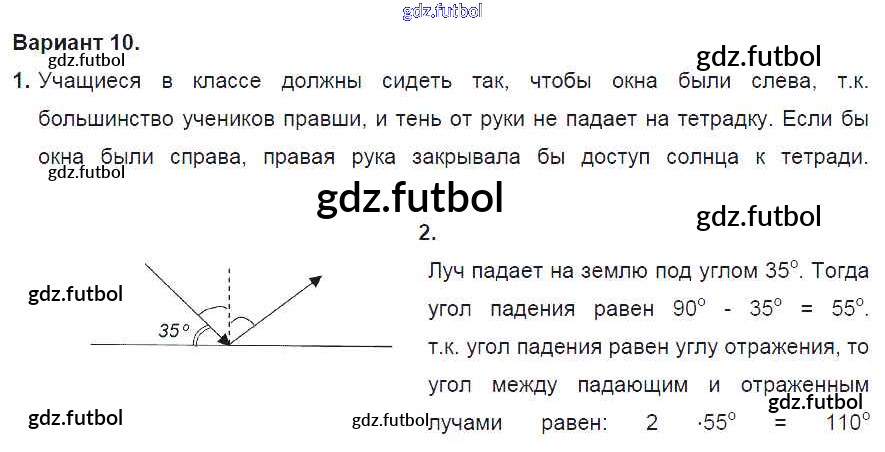 Готовые домашние задания по Физике за 8 класс Марон Дидактические материалы Вертикаль 2016 ФГОС - СР №12. Отражение света. Плоское зеркало. Варианты 10