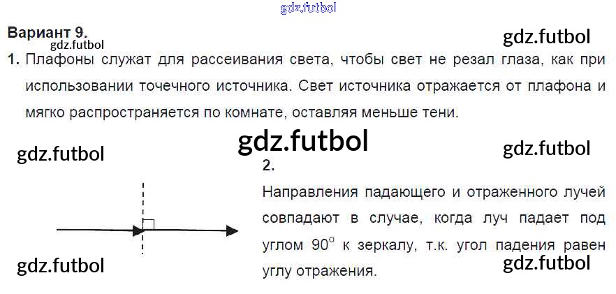 Готовые домашние задания по Физике за 8 класс Марон Дидактические материалы Вертикаль 2016 ФГОС - СР №12. Отражение света. Плоское зеркало. Варианты 9