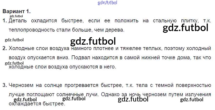 Готовые домашние задания по Физике за 8 класс Марон Дидактические материалы Вертикаль 2016 ФГОС - СР №2. Виды теплопередачи. Варианты 1