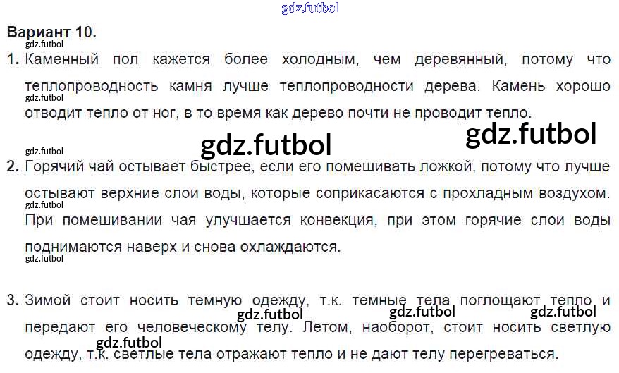 Готовые домашние задания по Физике за 8 класс Марон Дидактические материалы Вертикаль 2016 ФГОС - СР №2. Виды теплопередачи. Варианты 10