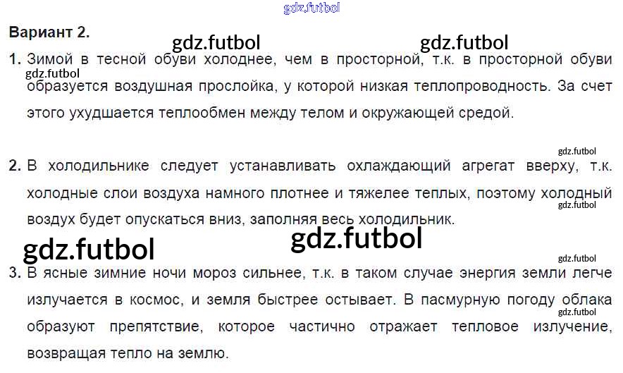 Готовые домашние задания по Физике за 8 класс Марон Дидактические материалы Вертикаль 2016 ФГОС - СР №2. Виды теплопередачи. Варианты 2